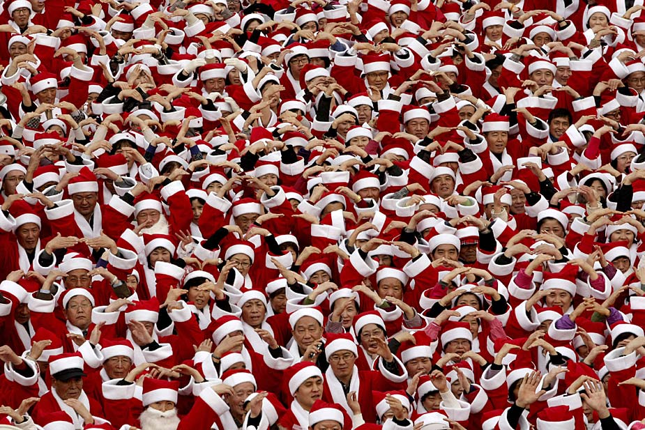 12月1日,韓國(guó)首都首爾市,一千多名“圣誕老人”舉行游行為社會(huì)慈善項(xiàng)目籌款。圖片來源:中國(guó)新聞網(wǎng)