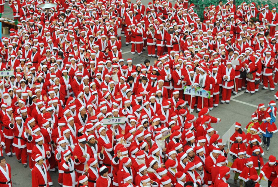 12月1日,韓國首都首爾市,一千多名“圣誕老人”舉行游行為社會(huì)慈善項(xiàng)目籌款。圖片來源:中國新聞網(wǎng)