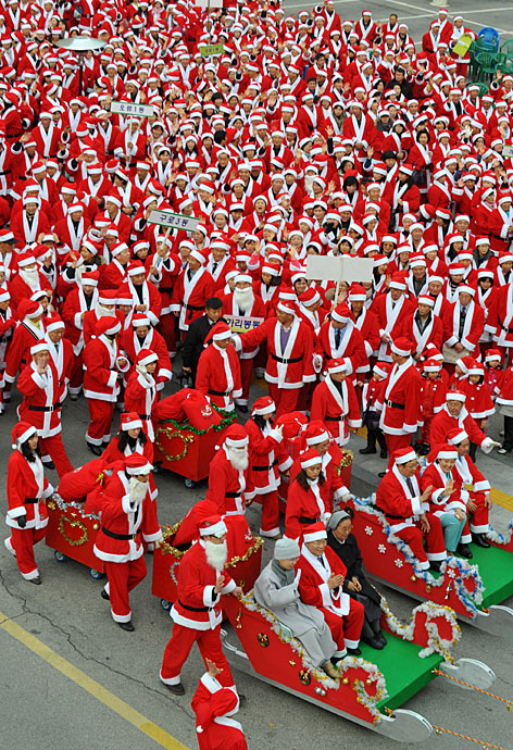 12月1日,韓國首都首爾市,一千多名“圣誕老人”舉行游行為社會慈善項目籌款。圖片來源:中國新聞網(wǎng)