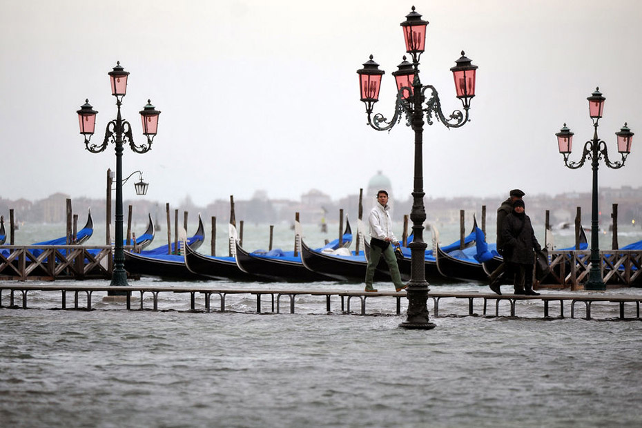 11月30日,意大利水城威尼斯受潮汐和一股強(qiáng)烈的熱帶風(fēng)暴影響再次被洪水淹沒,部分地區(qū)最高水位達(dá)到1.31米。圖片來源:中國新聞網(wǎng)