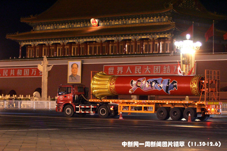 12月3日凌晨,北京天安門廣場上象征民族大團(tuán)結(jié)的56根民族團(tuán)結(jié)柱,經(jīng)北京住總集團(tuán)等單位的施工,已從天安門廣場全部拆除,進(jìn)行回廠維護(hù)。國慶六十周年慶典期間,分列在天安門廣場兩側(cè)的民族團(tuán)結(jié)柱受到全國各族人民的喜愛,成為節(jié)日一道亮麗的風(fēng)景。為了永久留存這56根民族團(tuán)結(jié)柱,北京市政府決定將它們拆除遷移回廠,進(jìn)行妥善維護(hù)后再擇地安放。圖片來源:中國新聞網(wǎng)