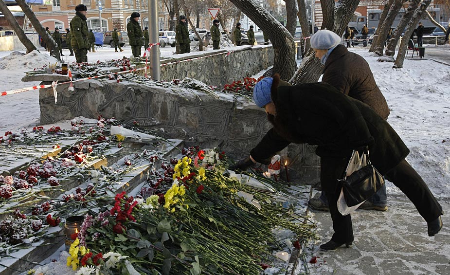 12月6日,在俄羅斯彼爾姆邊疆區(qū)首府彼爾姆市,人們在夜總會火災(zāi)事故現(xiàn)場附近哀悼遇難者。圖片來源:中國新聞網(wǎng)
