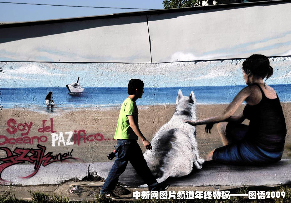 世界最長的涂鴉墻:11月15日,智利圣地亞哥近千名藝術家繪制了1800米長的涂鴉墻,打破了吉尼斯世界紀錄。圖片來源:中國新聞網(wǎng)