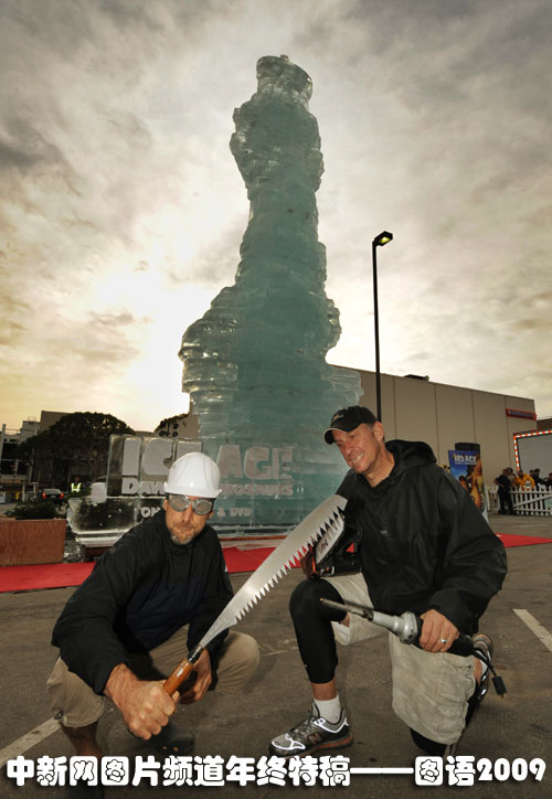 世界最高冰雕:10月27日,美國圣莫尼卡一座造型為《冰河世紀:恐龍的黎明》中小松鼠的巨型冰雕聳立在廣場上。這座冰雕高約48英尺,打破了法國人06年創(chuàng)下的高度為40.28英尺的吉尼斯紀錄,成為世界上最高的冰雕。圖片來源:中國新聞網(wǎng)