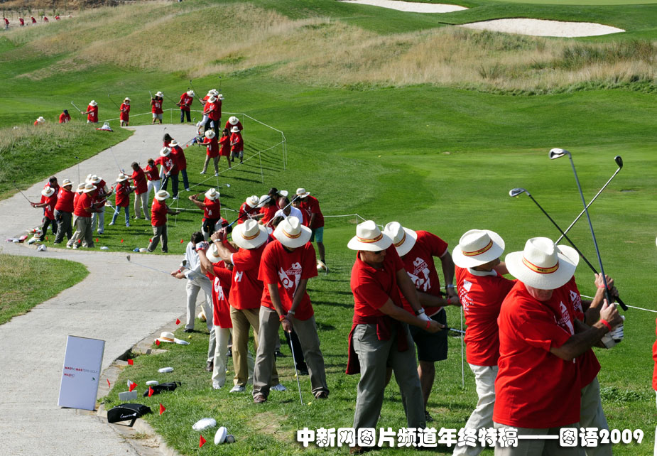 最多人同打高爾夫球:9月27日,2016名高爾夫球手在西班牙首都馬德里的國(guó)家高爾夫球中心同打高爾夫球,創(chuàng)造了一項(xiàng)新的吉尼斯世界紀(jì)錄。圖片來(lái)源:中國(guó)新聞網(wǎng)