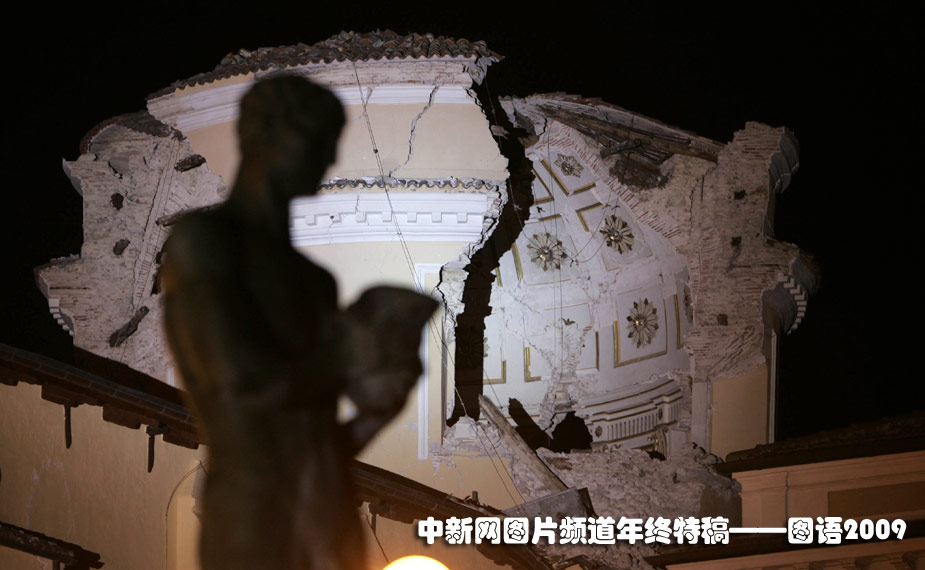 4月7日,意大利拉奎拉市眾多歷史悠久的建筑和文物在地震中嚴重受損。