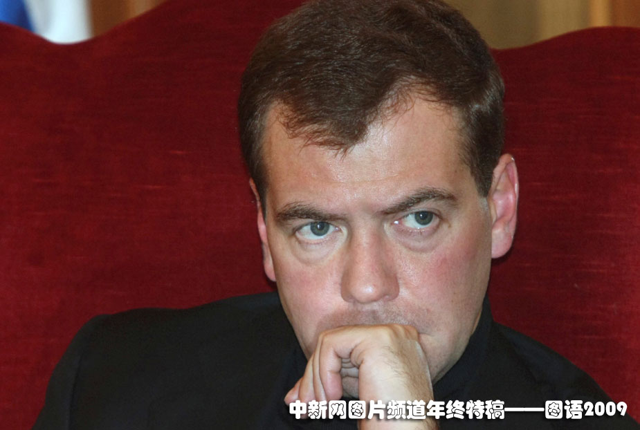 思考者:2009年1月20日,俄羅斯總統(tǒng)梅德韋杰夫在參加地方議會討論時陷入沉思中。