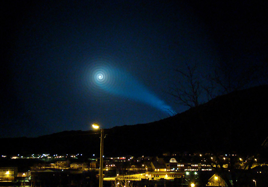 12月9日,挪威北部特羅姆瑟市上空發(fā)現(xiàn)不明“藍色發(fā)光螺旋狀”現(xiàn)象。圖片來源:中國新聞網(wǎng)
