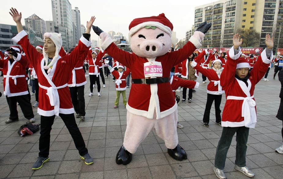 12月12日,“圣誕老人”馬拉松賽跑當(dāng)日在首爾舉行。超過一千名“圣誕老人”參加了此次長跑活動。