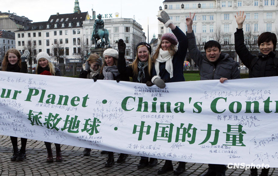12月12日,正在丹麥哥本哈根召開的聯(lián)合國(guó)氣候會(huì)議舉行部分與會(huì)國(guó)會(huì)外會(huì)議,500多個(gè)來(lái)自70多個(gè)國(guó)家和組織的成員以及當(dāng)?shù)丨h(huán)保者6萬(wàn)多人匯集哥本哈根市貝拉會(huì)展中心進(jìn)行大游行。圖為在哥本哈根環(huán)保大游行醒目的中國(guó)“環(huán)保先鋒行活動(dòng)”。 中新社發(fā) 錢興強(qiáng) 攝