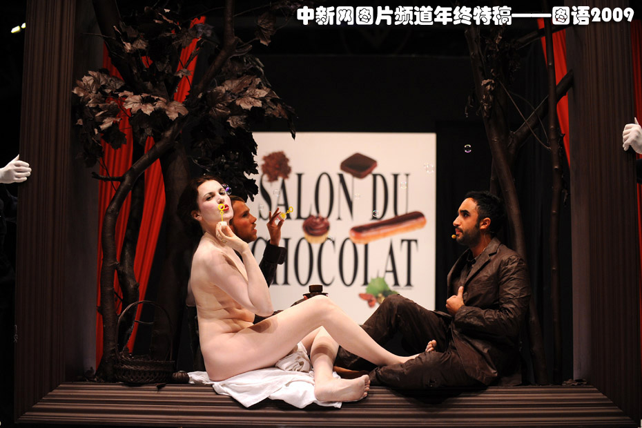 10月13日,第15屆法國巴黎巧克力展開幕,眾多明星身著巧克力服飾亮相。