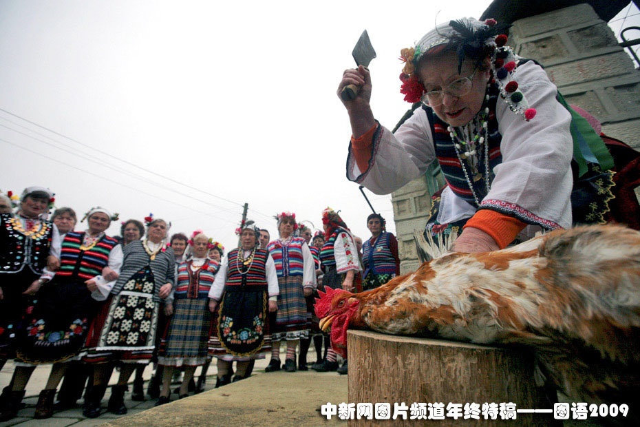 保加利亞“公雞節(jié)”——保加利亞首都索非亞?wèn)|部一個(gè)村莊2月2日慶!肮u節(jié)”,當(dāng)?shù)貗D女手舉穿著褲子的公雞又唱又跳,之后宰殺公雞作為祭祀貢品。當(dāng)?shù)貞c祝該節(jié)意在為家中男孩祈求健康。