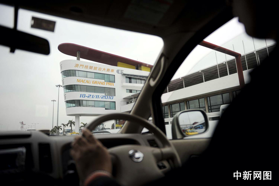 澳門(mén)民眾開(kāi)車(chē)路過(guò)澳門(mén)賽車(chē)場(chǎng),在平日里這個(gè)賽場(chǎng)的賽道作為普通道路供車(chē)輛行駛。中新社記者 廖攀 攝