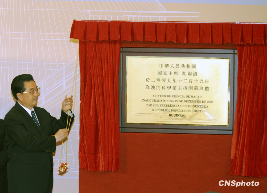 12月19日下午,國家主席胡錦濤在澳門出席澳門科學館開幕典禮并親手為之揭幕。中新社發(fā) 廖攀 攝