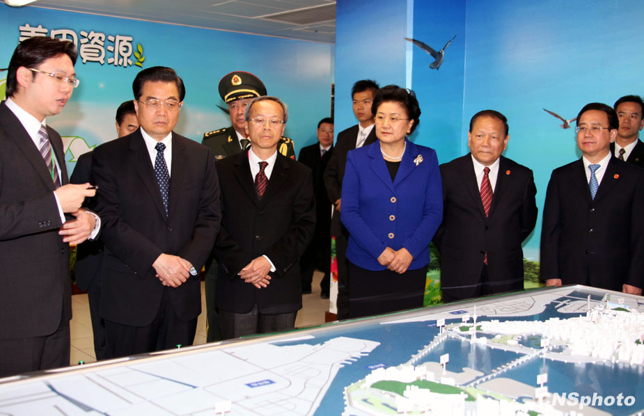 在訪問澳門的緊密行程中,中國國家主席胡錦濤十九日下午來到位于氹仔北安工業(yè)區(qū)的家居棄置物處理中心。胡錦濤聽取了澳門環(huán)保基建設(shè)施沙盤及展示板介紹并參觀了控制室。中新社發(fā) 張朔 攝
