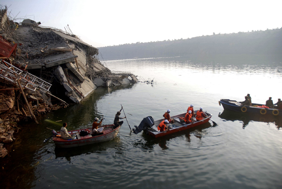 25日,印度西部地區(qū)發(fā)生橋梁倒塌事故。警方稱死亡人數(shù)在26日可能已經(jīng)至少升至45人。