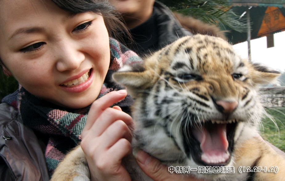 2010年1月1日,重慶野生動物世界把出生一個月的3胞胎小老虎抱到園區(qū)與游人親密接觸。虎崽們乖巧可愛又不失威武的形象讓游人愛不釋手,游人們紛紛與之親密接觸、合影。圖片來源:中國新聞網(wǎng)>>點擊觀看詳細內(nèi)容