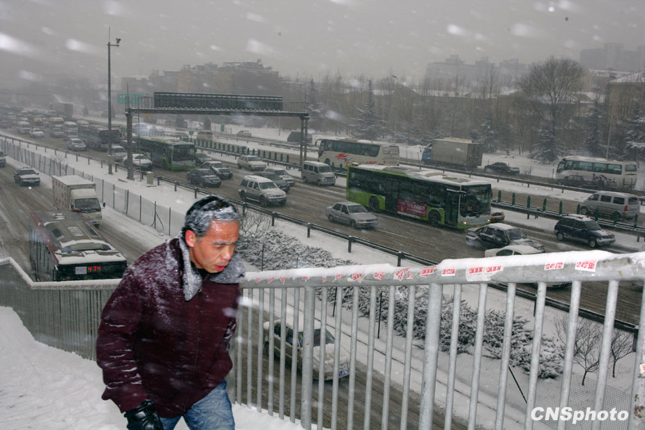 1月3日,北京城降下大雪,積雪深達(dá)6厘米,預(yù)計(jì)雪花會(huì)飄灑一整天。天氣預(yù)報(bào)稱,北京地區(qū)的氣溫有可能達(dá)到-16℃,從而逼近40年來的歷史低溫極值。圖片來源:中國新聞網(wǎng)