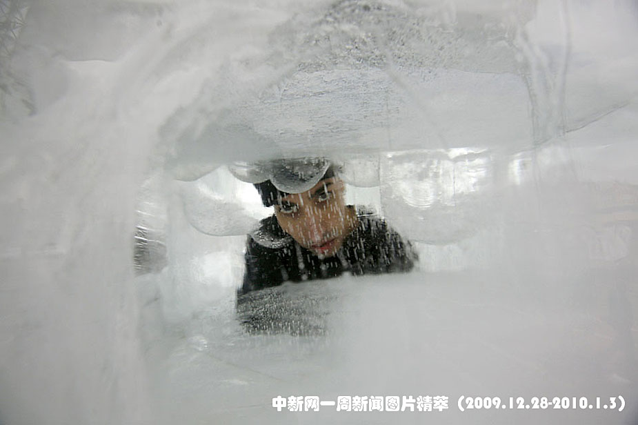 周二(29日),以色列魔術(shù)師赫齊·達揚在位于特拉維夫的拉賓廣場上,達揚赤身進入一塊8噸重的冰塊里,開始了挑戰(zhàn)冰屋生存世界紀(jì)錄之旅。圖片來源:中國新聞網(wǎng)