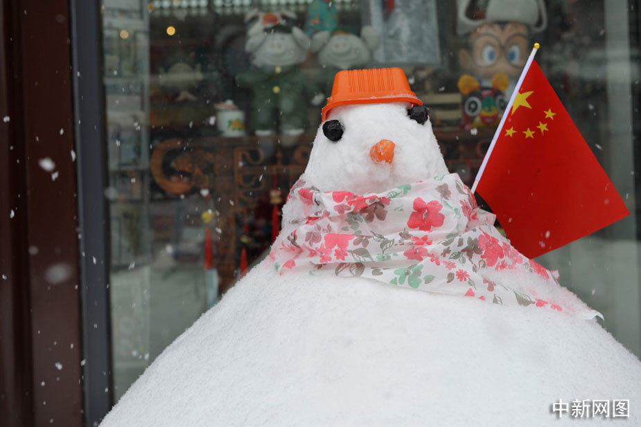 人們將積雪堆起做起了可愛(ài)的雪人。中新網(wǎng)記者 金碩 攝