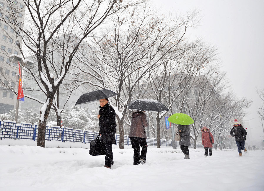 1月4日,韓國首都首爾等地區(qū)遭遇大雪襲擊。大批航班取消,交通嚴(yán)重受阻。圖片來源:中國新聞網(wǎng)