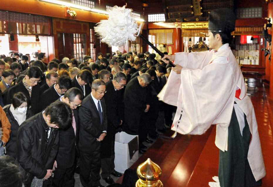2010年1月4日,日本東京,商人聚集在神田神社里祈福,希望在新的一年里生意興隆。當天是日本股市2010年首個交易日,市場升勢延續(xù)。圖片來源:中國新聞網(wǎng)