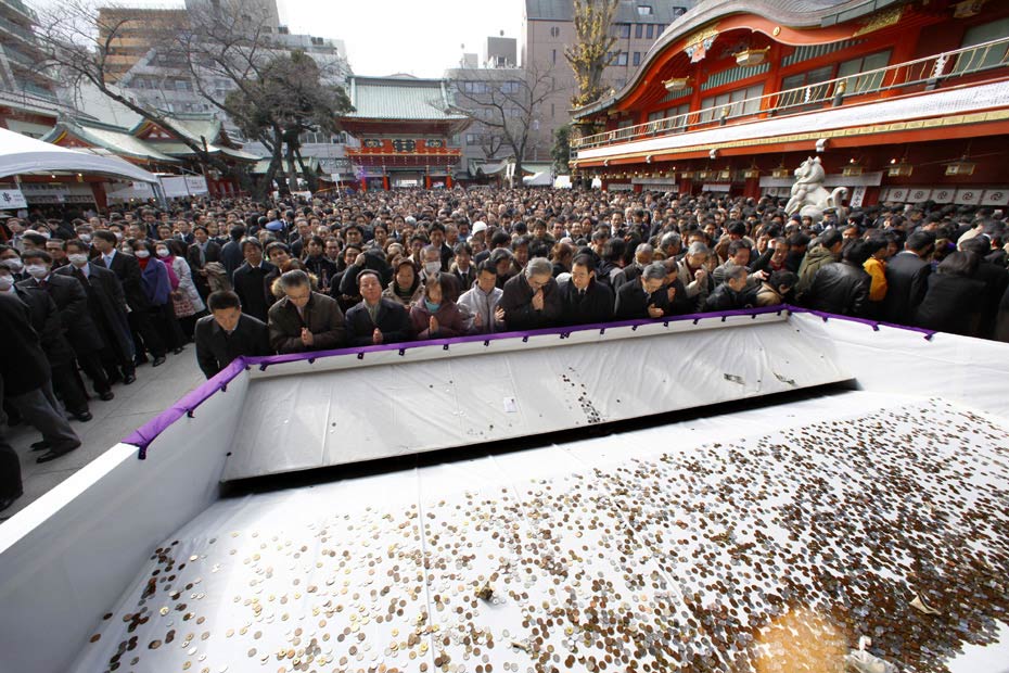 2010年1月4日,日本東京,商人聚集在神田神社里祈福,希望在新的一年里生意興隆。當(dāng)天是日本股市2010年首個(gè)交易日,市場(chǎng)升勢(shì)延續(xù)。圖片來(lái)源:中國(guó)新聞網(wǎng)