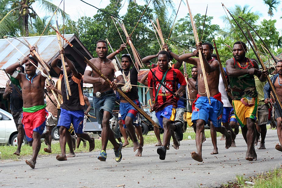 1月6日,印尼巴布省的兩個村落因債務(wù)問題引發(fā)了武裝爭斗,雙方手持弓箭等原始武器進(jìn)行了一場原始的戰(zhàn)爭。目前,這場沖突已經(jīng)造成多人傷亡。圖片來源:中國新聞網(wǎng)