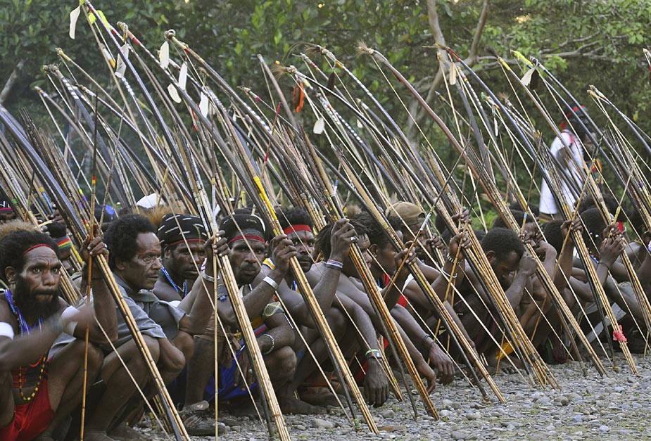 1月6日,印尼巴布省的兩個村落因債務(wù)問題引發(fā)了武裝爭斗,雙方手持弓箭等原始武器進行了一場原始的戰(zhàn)爭。目前,這場沖突已經(jīng)造成多人傷亡。圖片來源:中國新聞網(wǎng)