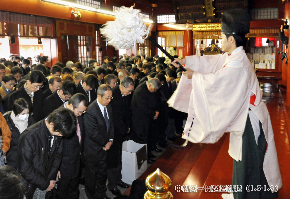 2010年1月4日,日本東京,商人聚集在神田神社里祈福,希望在新的一年里生意興隆。當(dāng)天是日本股市2010年首個(gè)交易日,市場(chǎng)升勢(shì)延續(xù)。圖片來源:中國(guó)新聞網(wǎng)>>點(diǎn)擊觀看詳細(xì)內(nèi)容