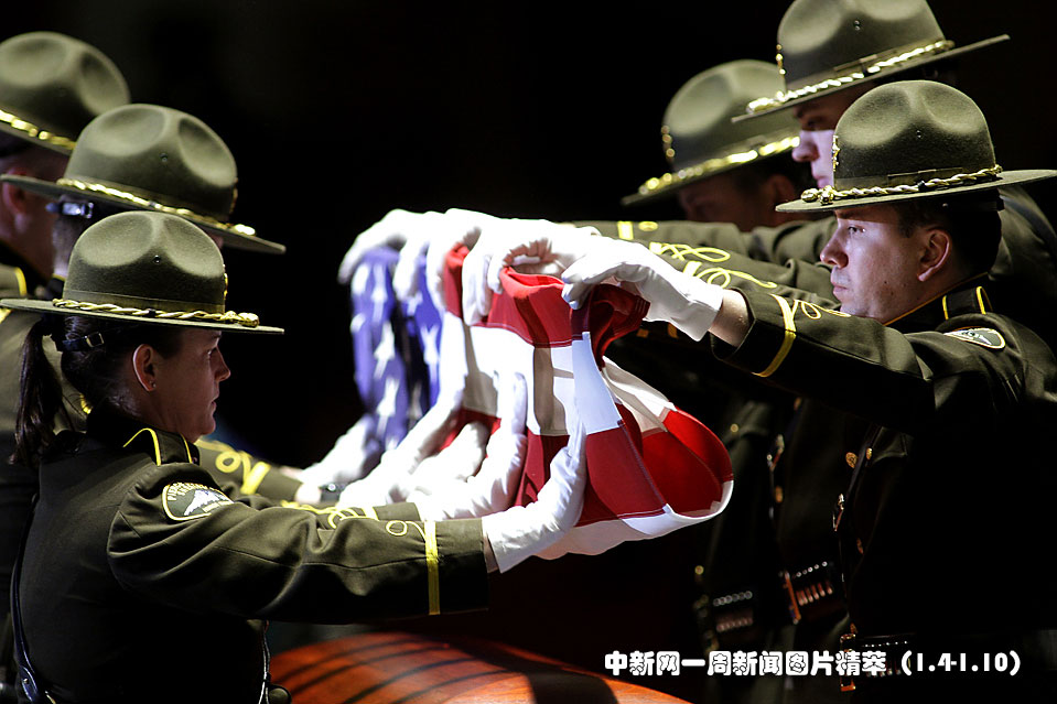 1月5日(周二),華盛頓州皮爾斯縣已故副警長孟德爾(Kent Mundell)的追悼會在塔科馬舉行,同事們將蓋在孟德爾棺木上的國旗折疊整齊。孟德爾上個月處理一起糾紛時遭槍擊身亡。圖片來源:中國新聞網(wǎng)