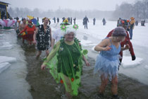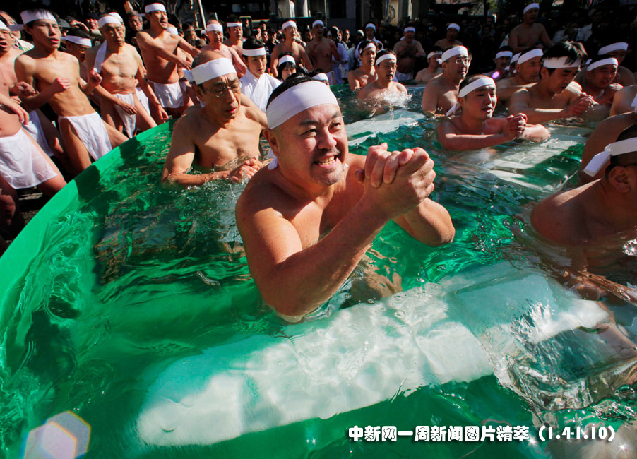 1月10日(周日),日本東京,一群健身愛(ài)好者在冷水中浸泡,“比拼”毅力。圖片來(lái)源:中國(guó)新聞網(wǎng)