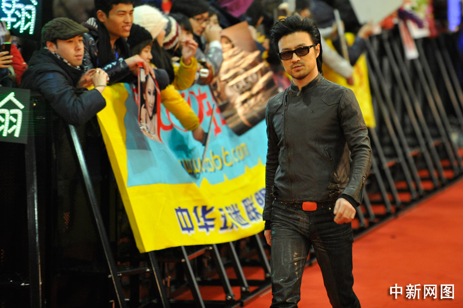 圖為汪峰個(gè)性黑衣超酷出場。中新網(wǎng)記者 金碩 攝