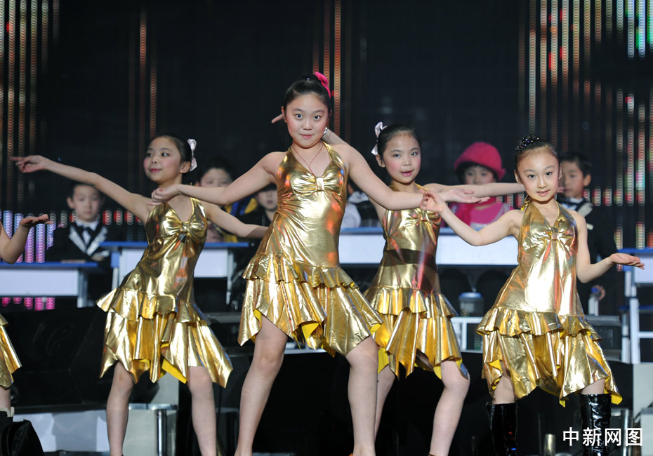 1月11日晚,第二屆音樂風(fēng)云榜新人盛典在京舉行,盛典現(xiàn)場的音樂課上,兒童版的Wonder Girl、Super Junior、邁克爾·杰克遜、曾軼可、大張偉紛紛登臺獻(xiàn)藝,讓現(xiàn)場觀眾們笑聲不斷。中新網(wǎng)記者 金碩 攝