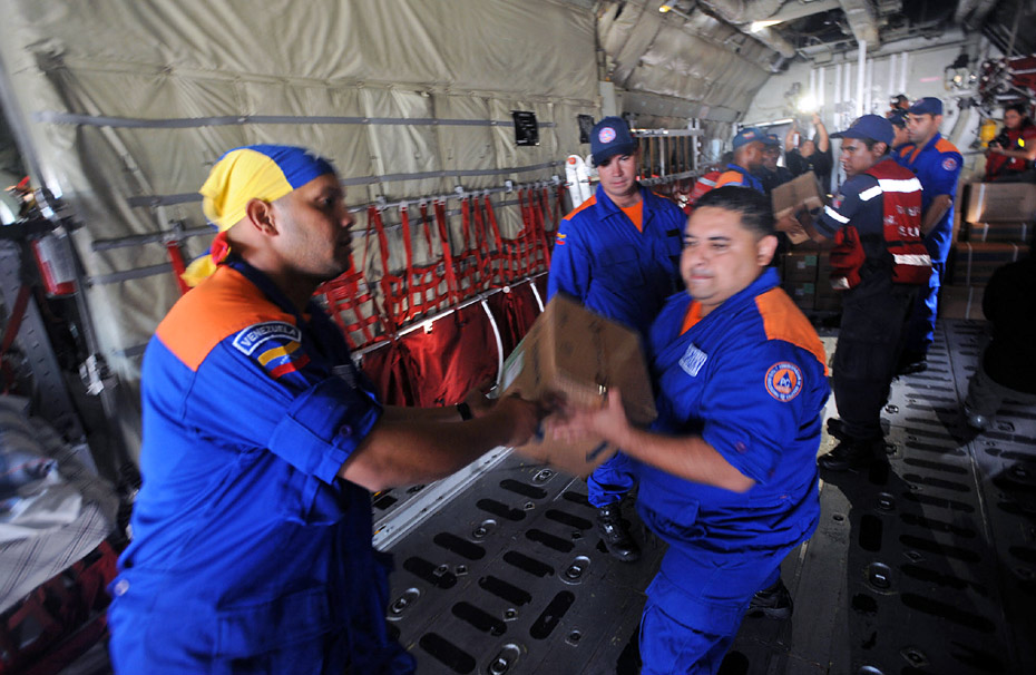 圖為委內(nèi)瑞拉救援物資正在緊張裝備中。海地發(fā)生強(qiáng)烈地震,傷亡慘重,國際社會(huì)在第一時(shí)間紛紛伸出援手。中國、美國、法國等多個(gè)國家和地區(qū)的救援隊(duì)已集結(jié)完畢,奔赴海地地震災(zāi)區(qū)。圖片來源:中國新聞網(wǎng)