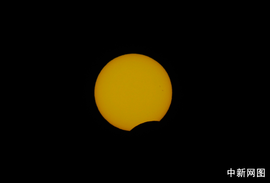 圖為北京時間15:40拍攝到的太陽。中新網(wǎng)記者 金碩 攝