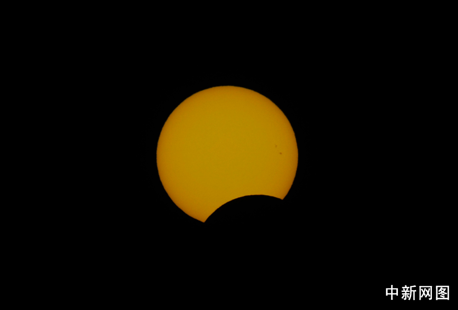 圖為北京時(shí)間15:50拍攝到的太陽(yáng)。中新網(wǎng)記者 金碩 攝