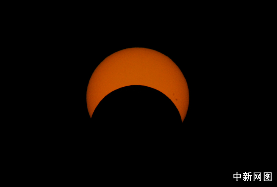 圖為北京時(shí)間16:28拍攝到的太陽(yáng)。中新網(wǎng)記者 金碩 攝