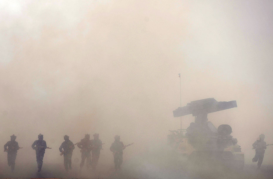 圖為印度陸軍在建軍節(jié)表演實戰(zhàn)技能。