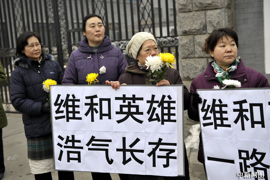 1月19日,北京民眾自發(fā)守候在通往北京八寶山殯儀館的路口迎接英烈的靈柩。當日,八位海地地震遇難中國維和警察的靈柩搭乘專機將抵達北京。中新網(wǎng)記者 金碩 攝