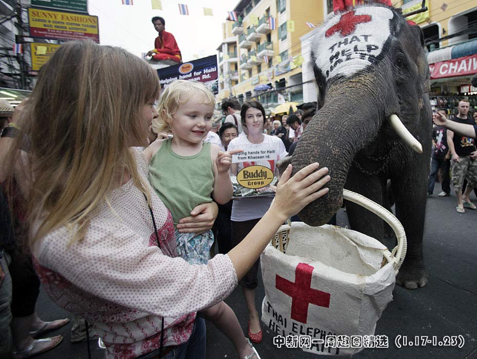 1月21日,在泰國首都曼谷舉辦了一場大象為海地災(zāi)區(qū)募捐活動。人們紛紛向大象攜帶的籃子內(nèi)放入善款,向海地地震幸存者獻上一份愛心。圖片來源:中國新聞網(wǎng)>>點擊觀看詳細內(nèi)容
