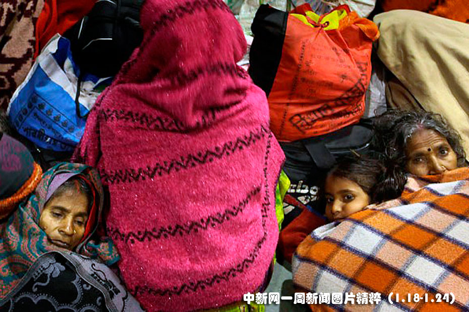 1月18日,乘客們在印度瓦拉納西的火車站候車時裹著毯子取暖。大霧和嚴(yán)寒天氣導(dǎo)致印度北部多個地區(qū)的交通中斷,反常的寒冷天氣已致使數(shù)十人喪生。圖片來源:中國新聞網(wǎng)