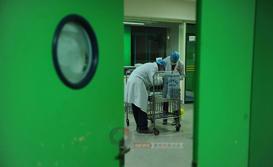 1月18日下午6點(diǎn)32分,在小振和去世后1小時內(nèi),眼庫工作人員到湖南省兒童醫(yī)院病房,在對著小小的遺體三鞠躬后,取出了眼角膜。瀟湘晨報(bào) 記者 楊抒懷 攝