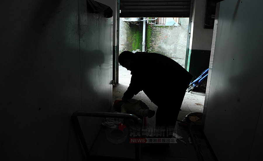 1月19日,省兒童醫(yī)院太平間,高雄飛給小振和穿上剛買的新衣服,送兒子最后一程!皟鹤!爸爸給 你穿衣服來了,乖乖的。 备咝埏w鼻子不停地抽搐,雙手卻輕輕地給 兒子穿上新買的黃色小衣裳。瀟湘晨報 記者 楊抒懷 攝