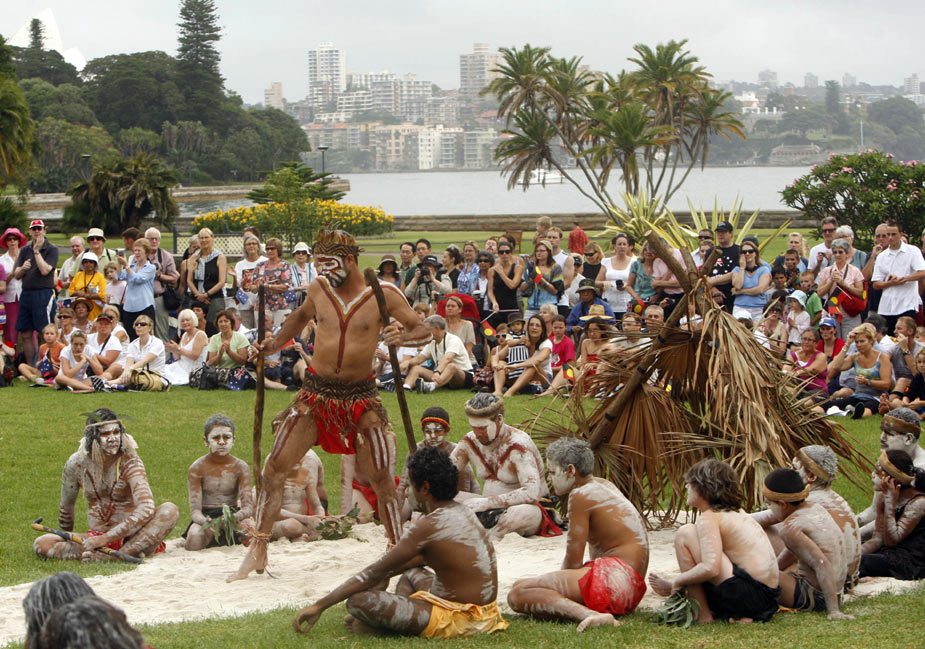 1月26日,澳大利亞土著居民在悉尼表演傳統(tǒng)舞蹈慶祝澳大利亞國慶日。