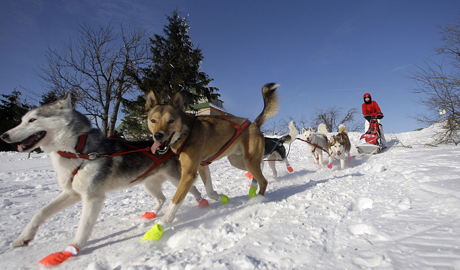 1月27日,一年一度的Sedivackuv Long雪橇犬大賽在捷克共和國的奧爾利采山脈舉行。該項賽事是歐洲地區(qū)最嚴(yán)酷、難度最高的雪橇犬大賽。圖片來源:中國新聞網(wǎng)