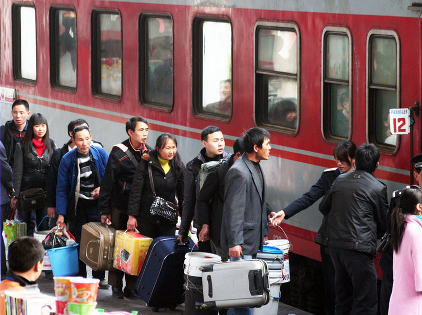 一年一度的春運今日起正式開始。2010年的春運從1月30日起至3月10日,為期40天,其中節(jié)前15天,節(jié)后25天。據(jù)權(quán)威預(yù)測,今年春運客運量料超25億人次。圖為旅客們準(zhǔn)備登上K804次福州開往重慶北的列車,趕在春運開始前返鄉(xiāng)。鄭帥 攝