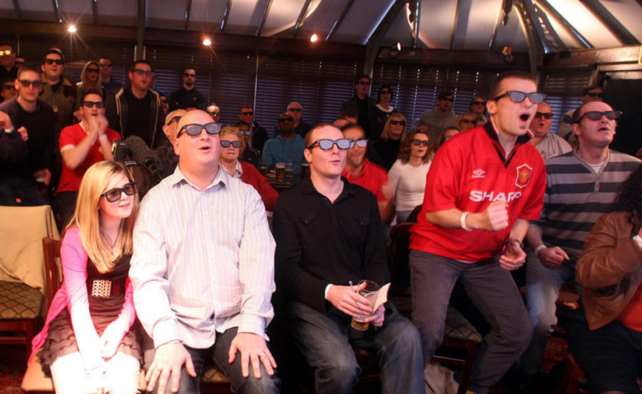 英國曼徹斯特,09/10英超第24輪,阿森納Vs曼聯(lián),曼聯(lián)球迷觀看3D直播。北京時(shí)間2月1日,英國體育頻道首次使用3D技術(shù)對(duì)阿森納與曼聯(lián)的比賽進(jìn)行電視直播。據(jù)悉,今年南非世界杯也將進(jìn)行3D轉(zhuǎn)播。