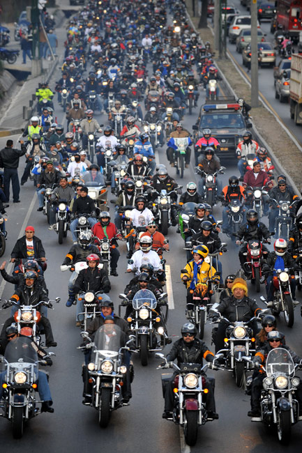 當?shù)貢r間2月6日,在危地馬拉首都危地馬拉城,大約30000名摩托車手駕駛著機車在街頭游行。