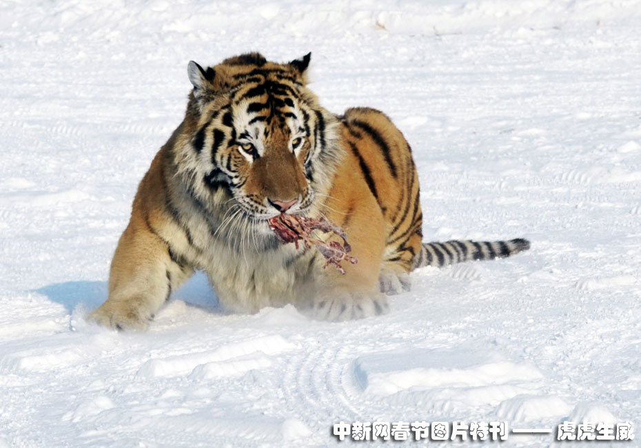 1月13日,黑龍江東北虎林園,老虎在雪地中嬉戲追逐。(王少華 張書儉 攝) 圖片來源:中國新聞網(wǎng)